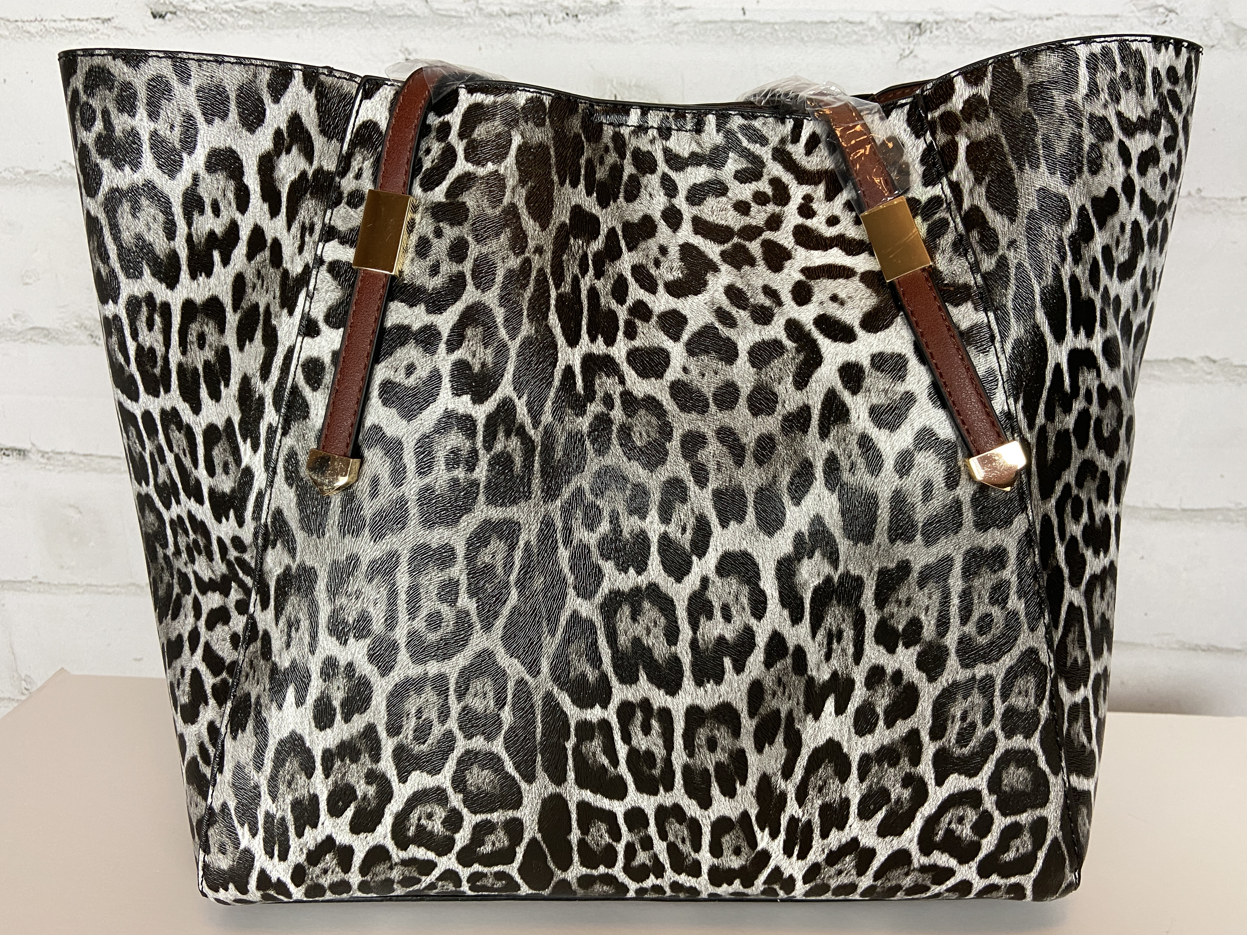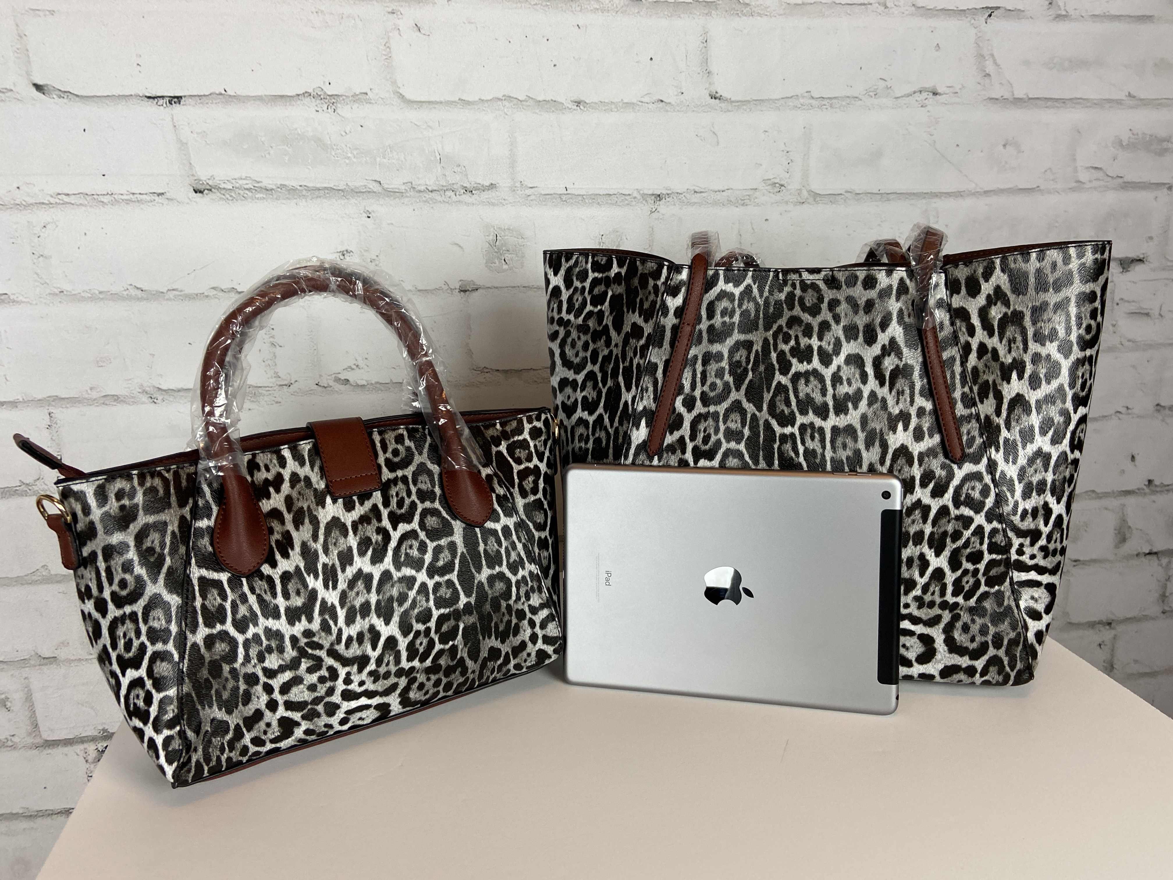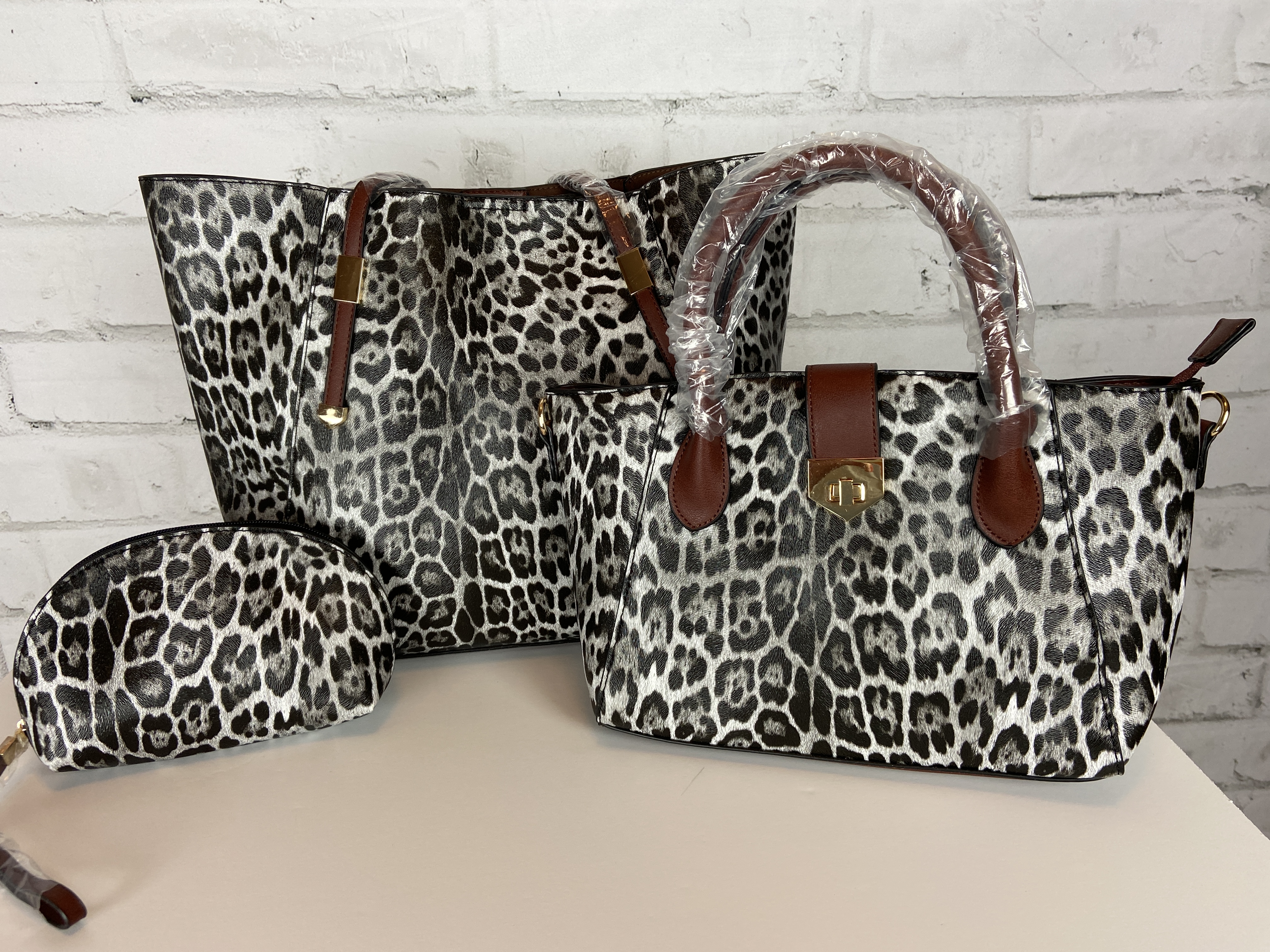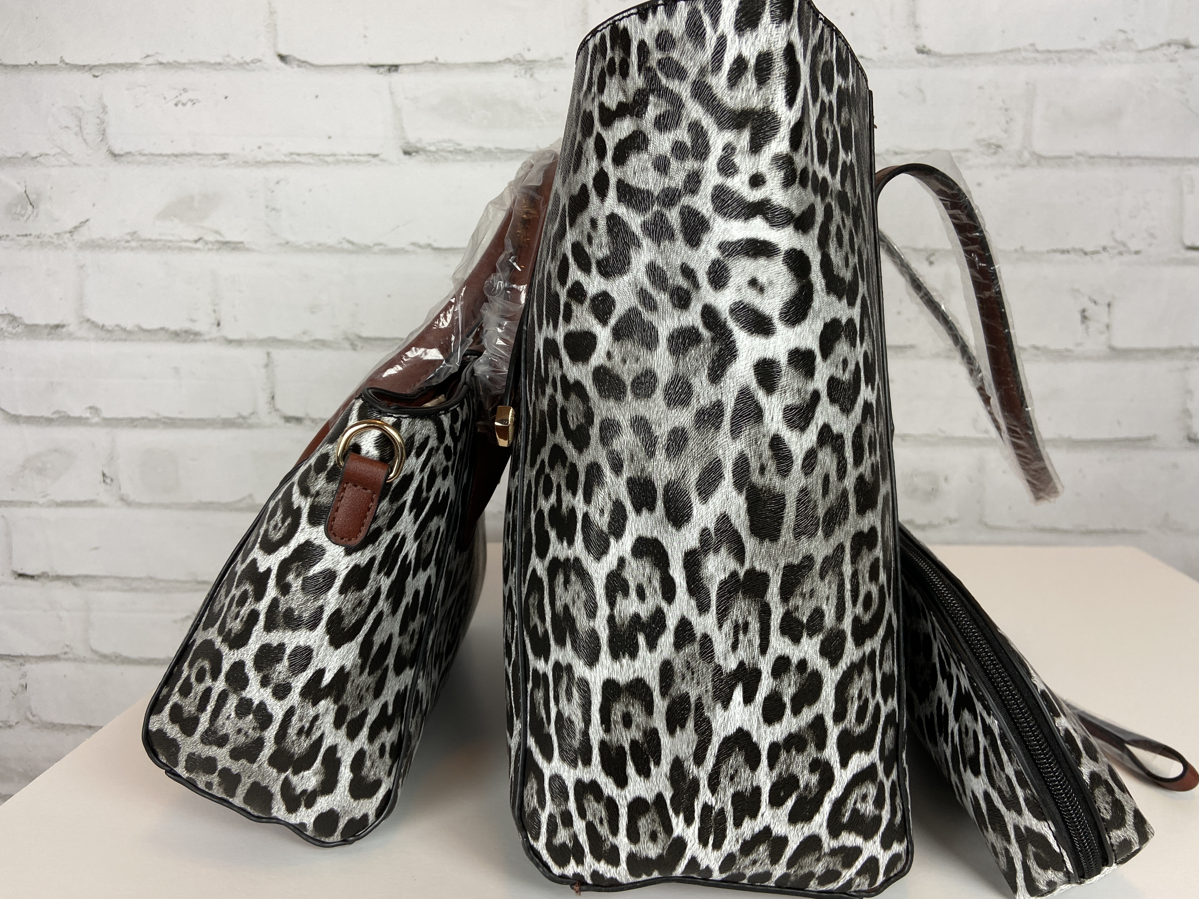 Black Leapord Croc 3-in-1 Tote Faux vegan leather Magnetic snap closure Gold-tone hardware Detachable shoulder strap 3-in-1 Bag. Gold feet. Very vibrant colors (Tote, Satchel & Clutch) 17 X12 X5.5 (8.5 ) comes with dust cover.