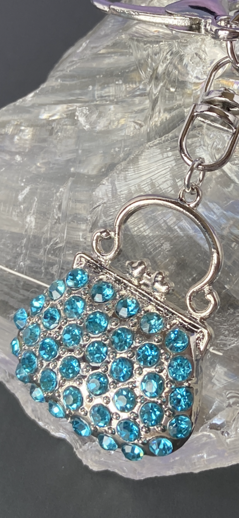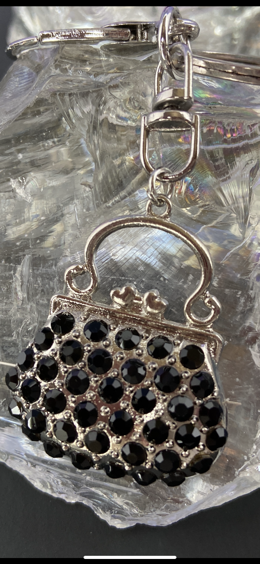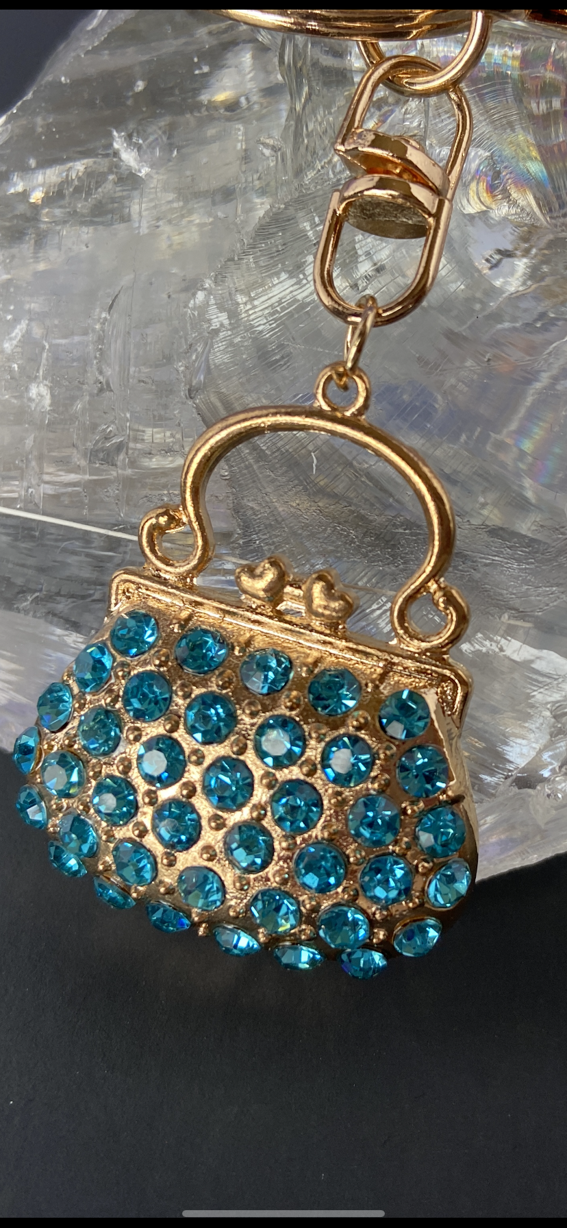 Bling chic stone embellished pendant keychain charm 5 different stone colors set in fashion silver or gold.