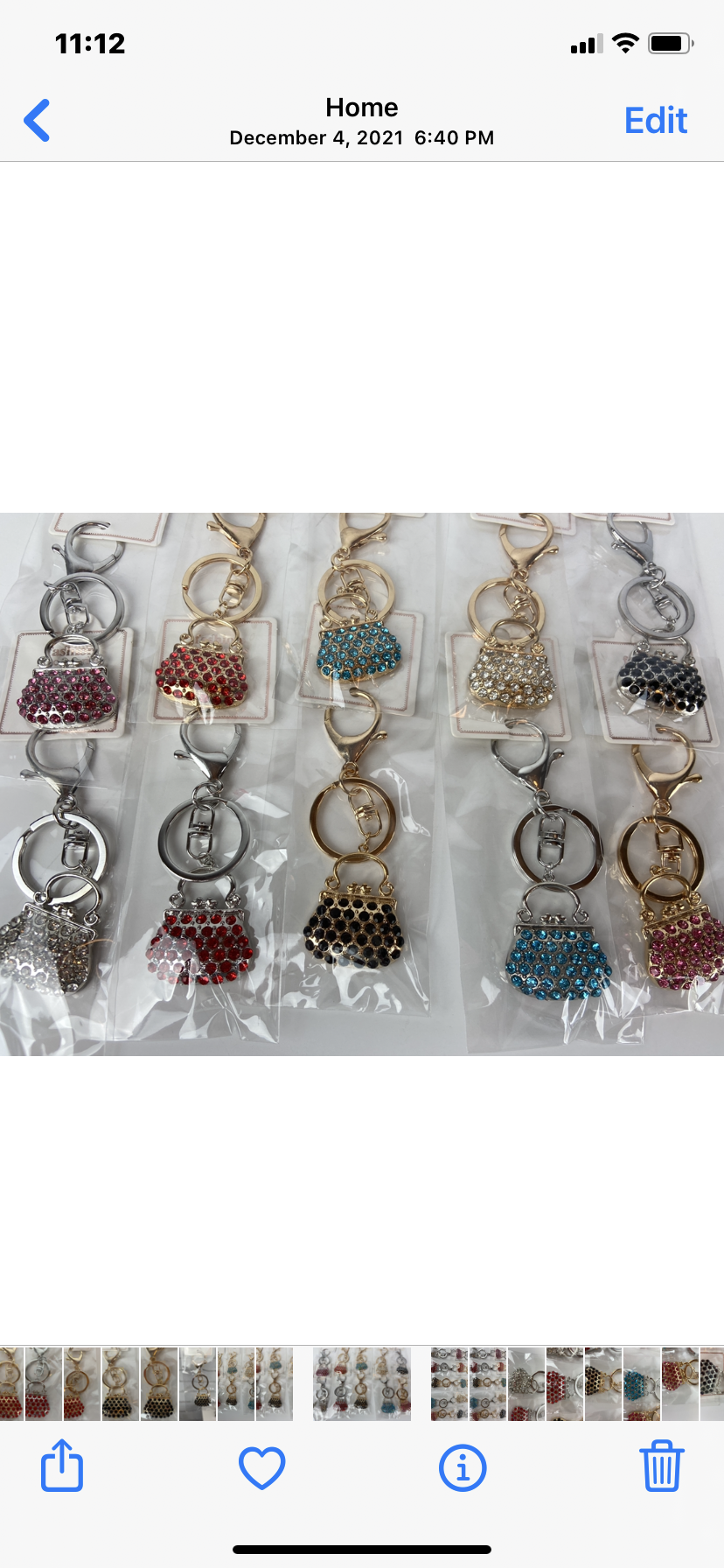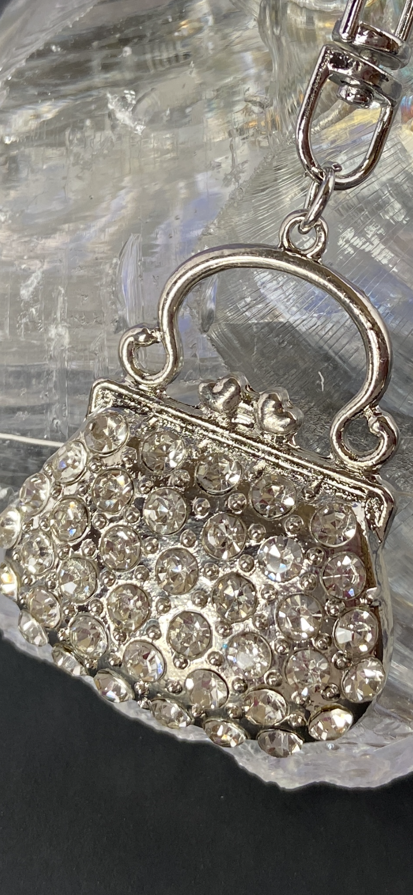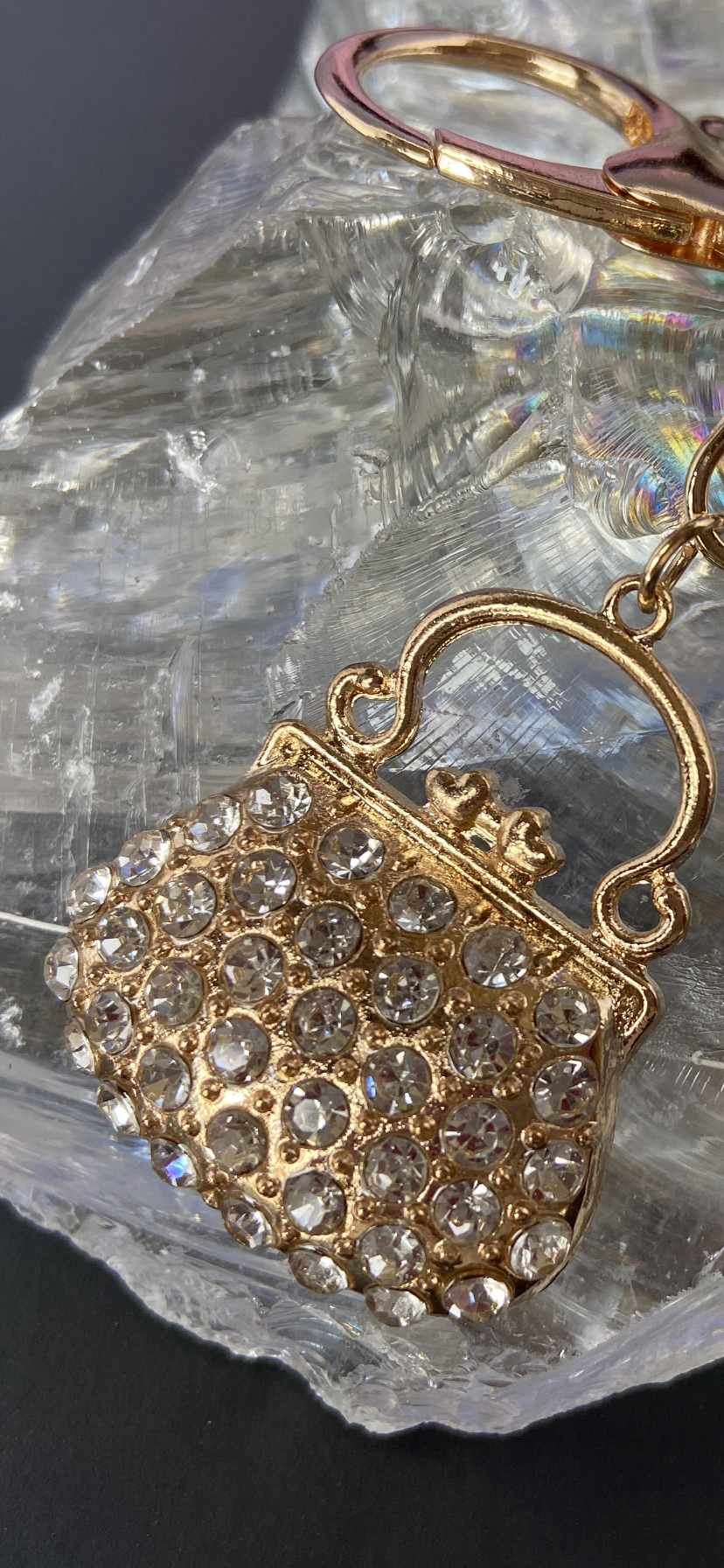 Bling chic stone embellished pendant keychain charm 5 different stone colors set in fashion silver or gold.