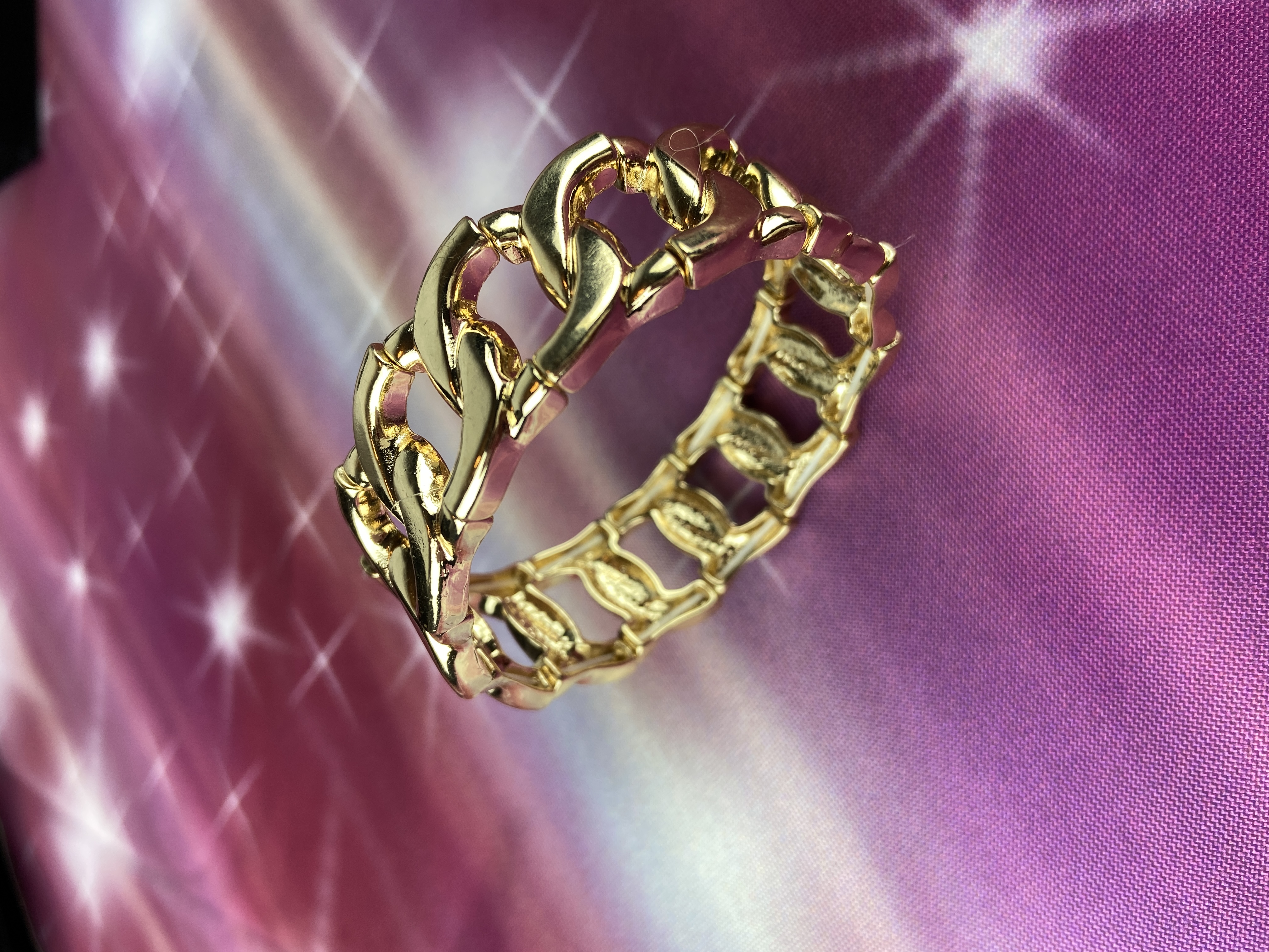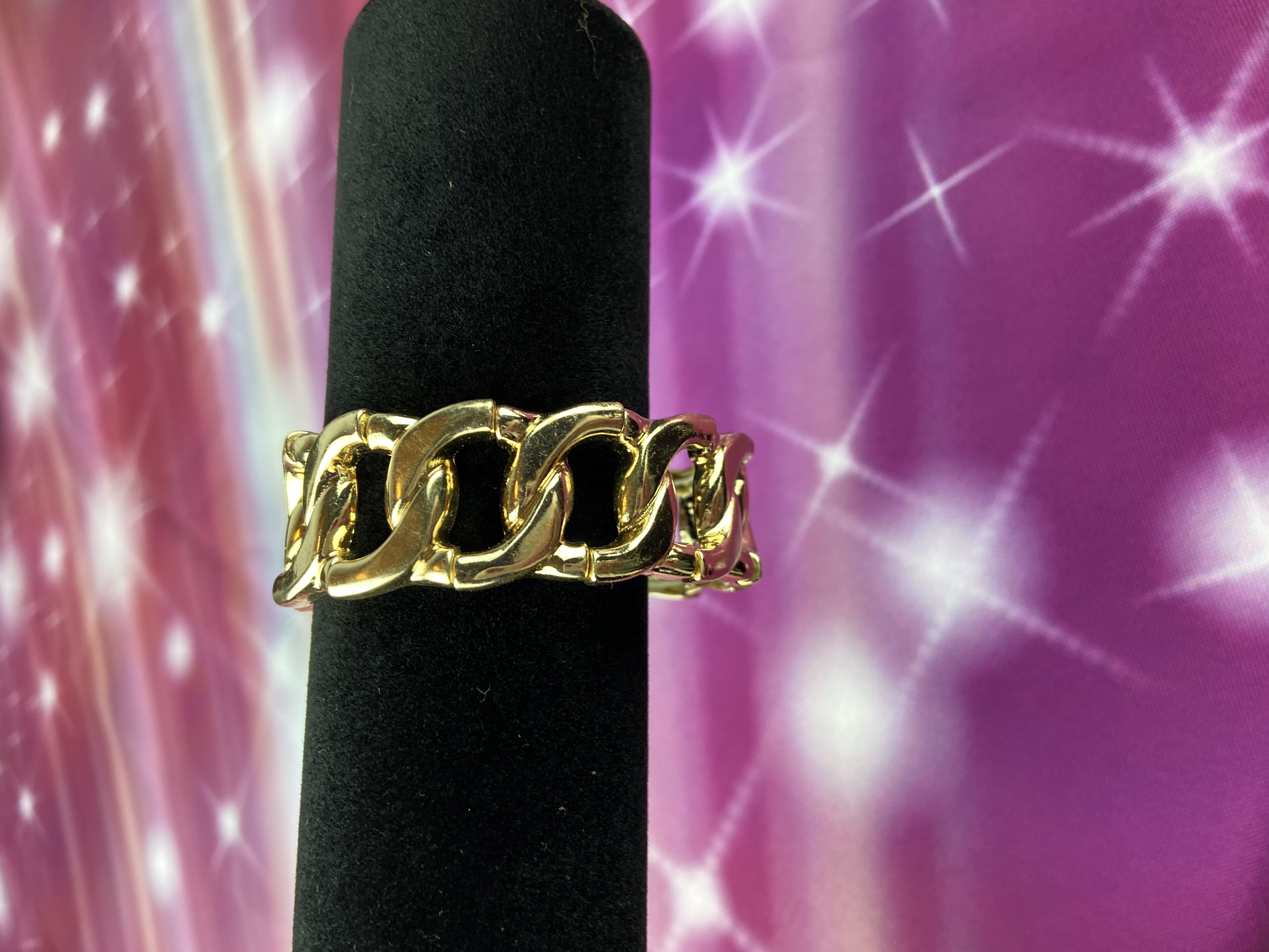 Casting chunky link chain stretch bracelet shiny gold tone heavy weighted loose fit