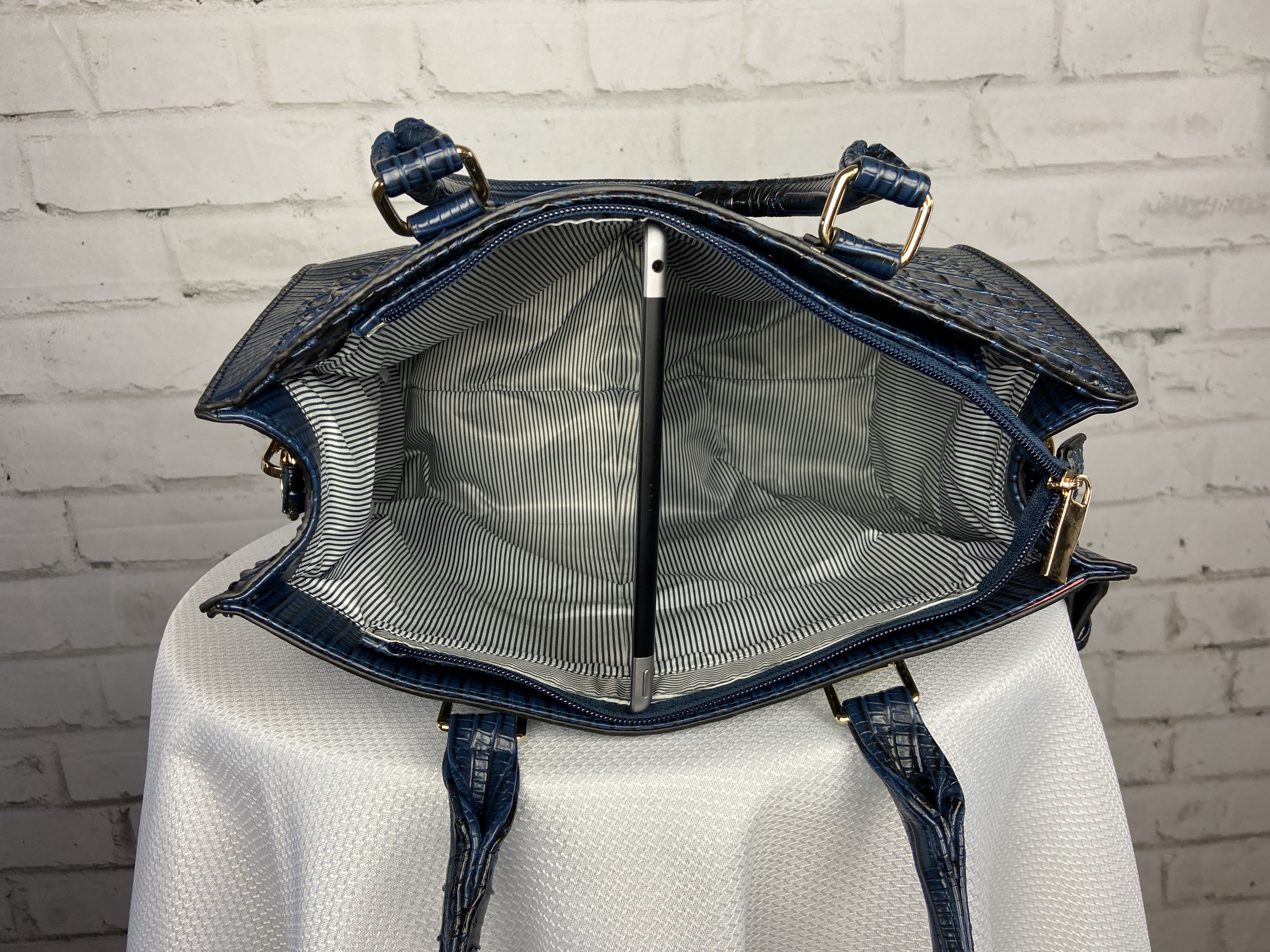 Product details:Navy Blue 4-in-1 large boxy satchel faux leather