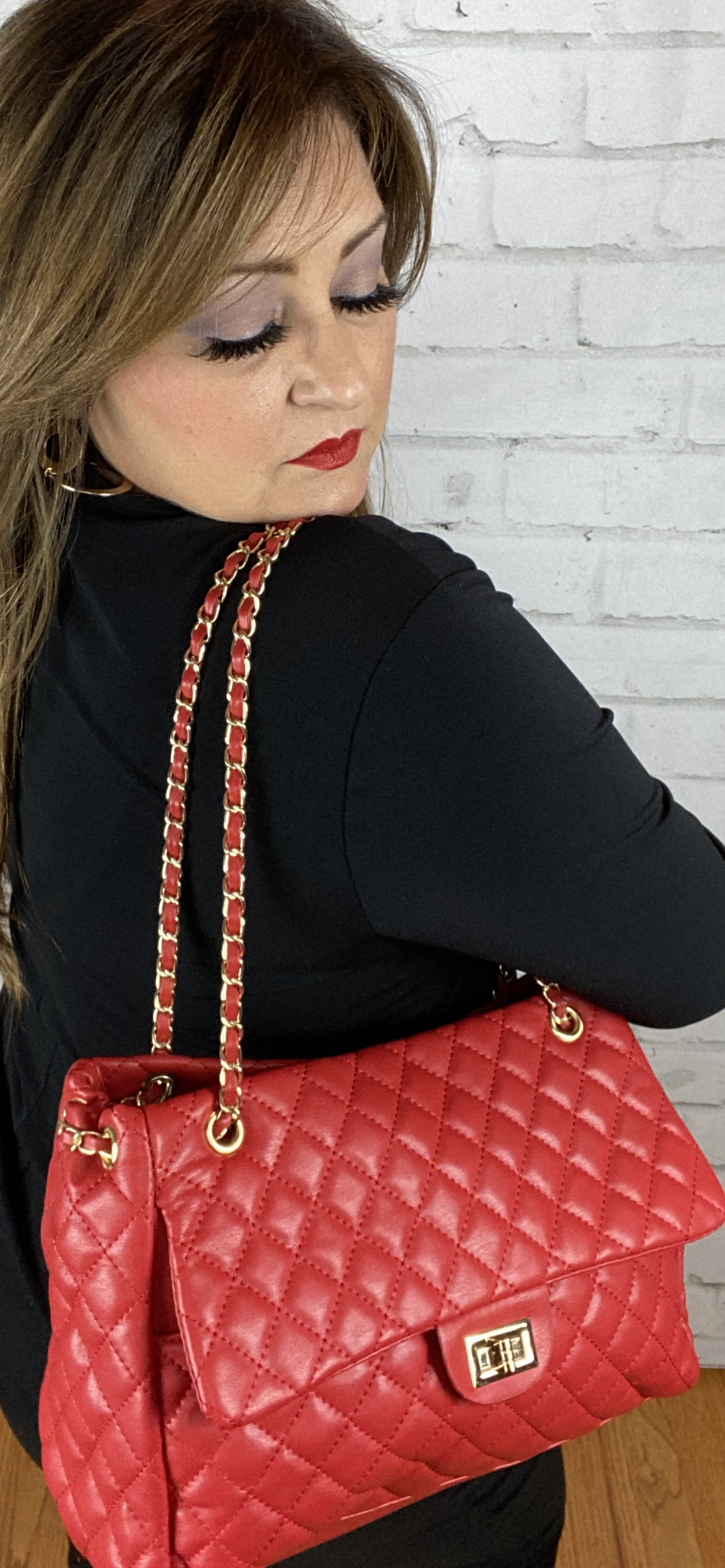 Red Quilted Chain Handbag Front Pocket Zipper Closure Very Large Bag, Exquisite Luxurious Head Turning Handbag