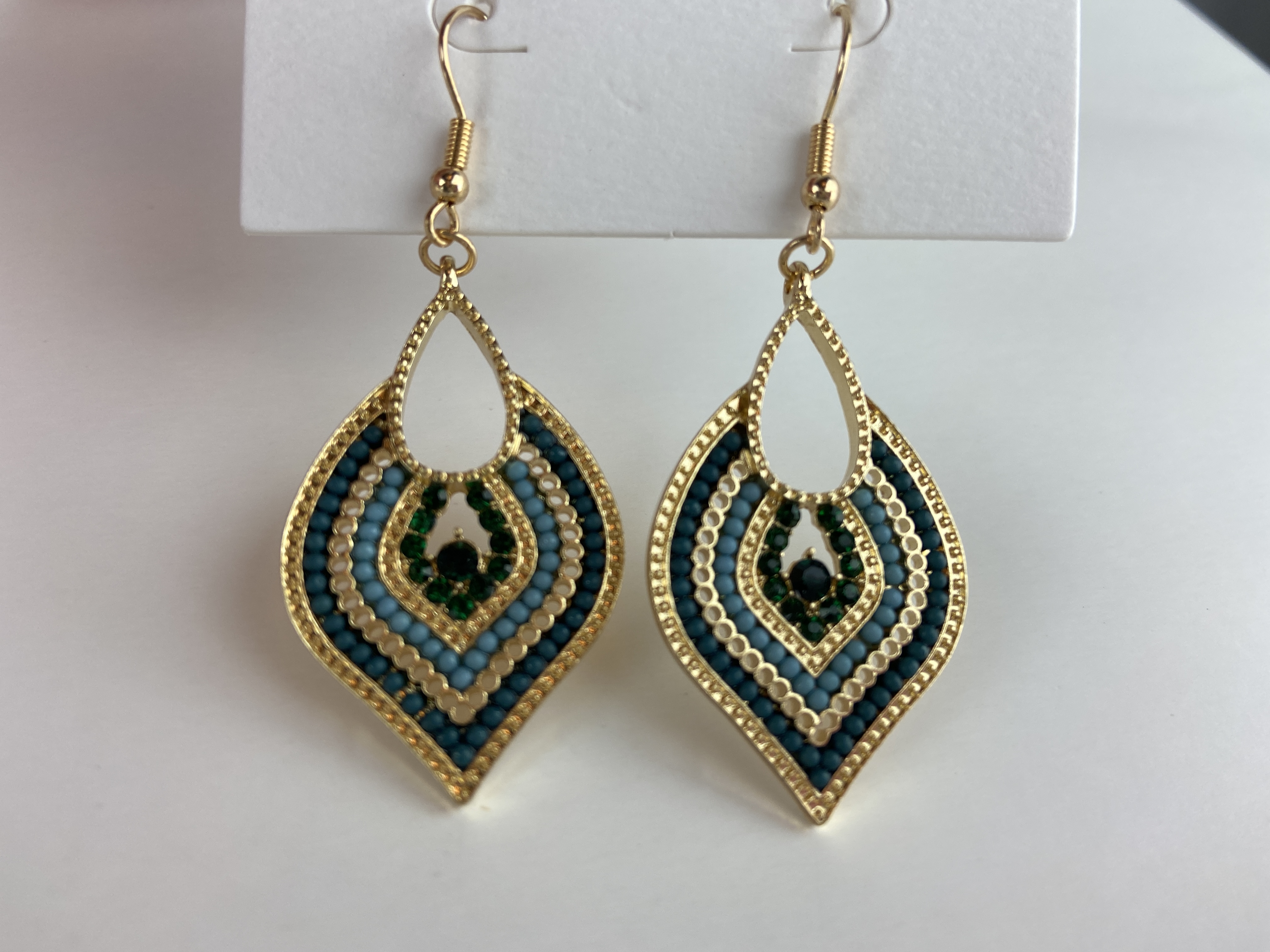 A high polish earring featuring tiny Moroccan beads and fish hook backing. DIMENSION length: 1" width: .5" earring back: Fish Hook, metal finish: Gold Plating product: Lead & Nickel Compliant anti-tarnish: Double E-coating